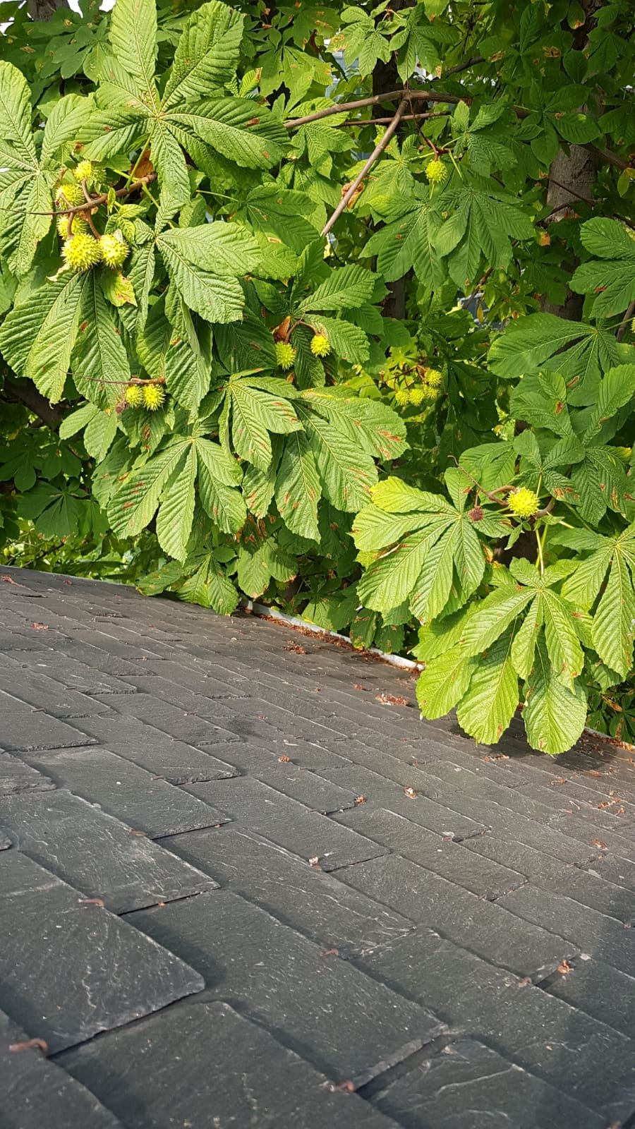 Encima tiene un castaño de indias que escupe hojas o frutos alternativamente.